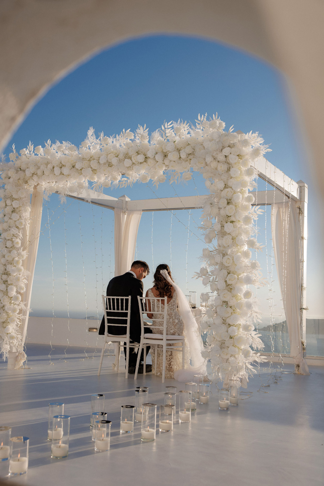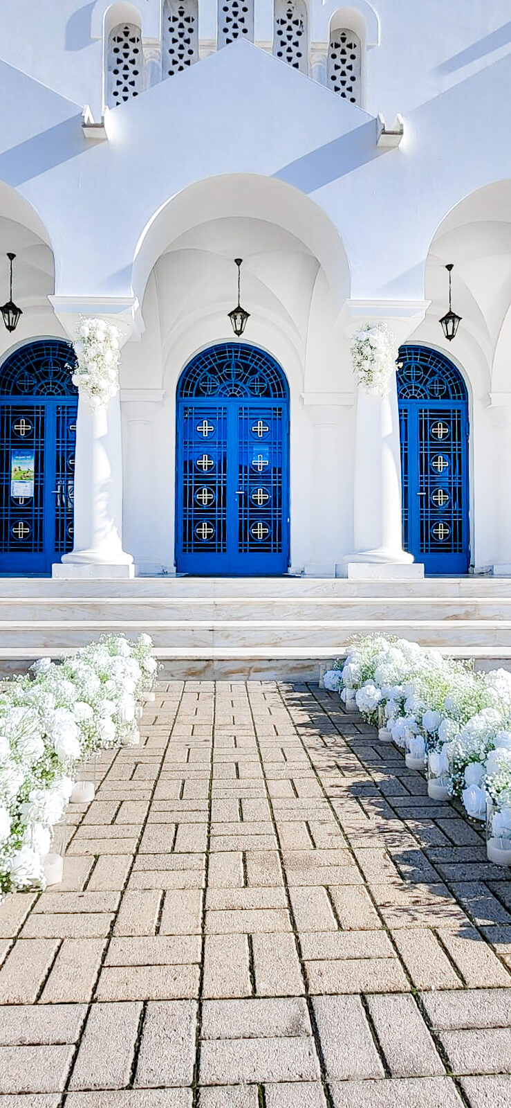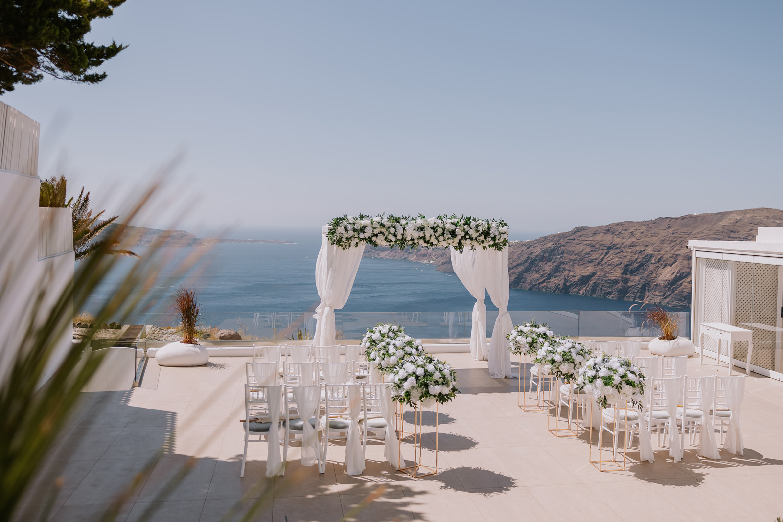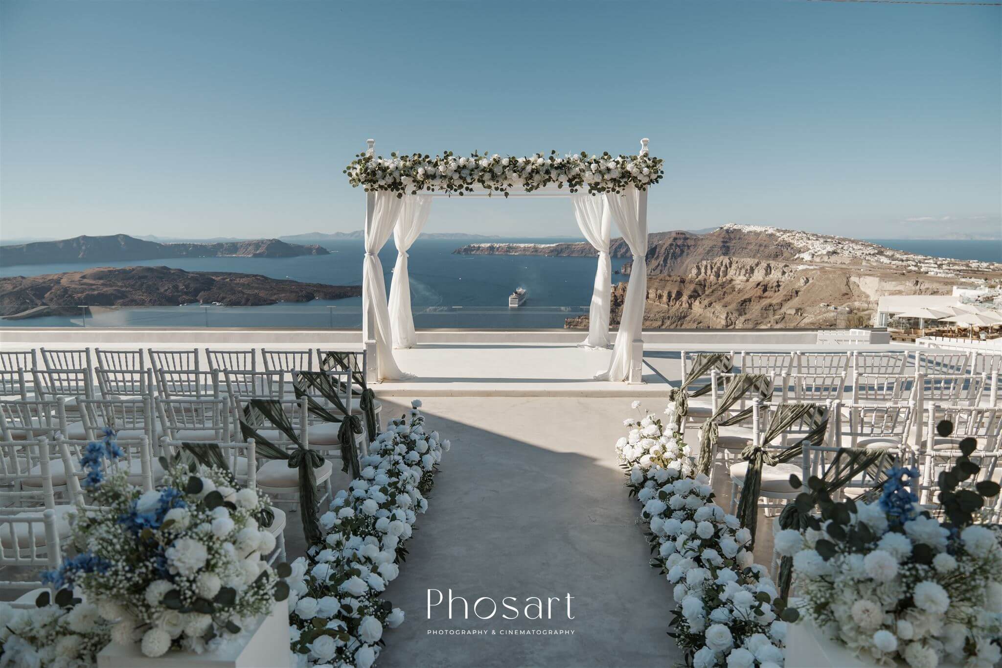 Wedding #weddinginsantorini #santoriniweddings #Santorini decoration #textures #fauxflowers #artificialflowers #mirroraisle #podium #floristinsantorini #weddingdecoration #weddingdeco #santorini