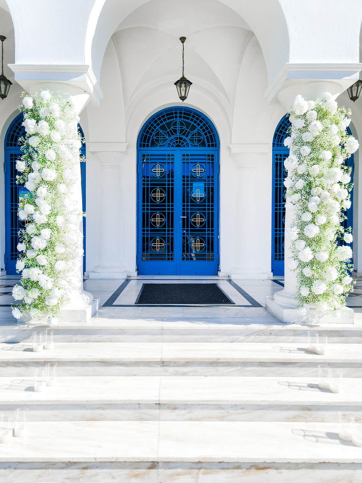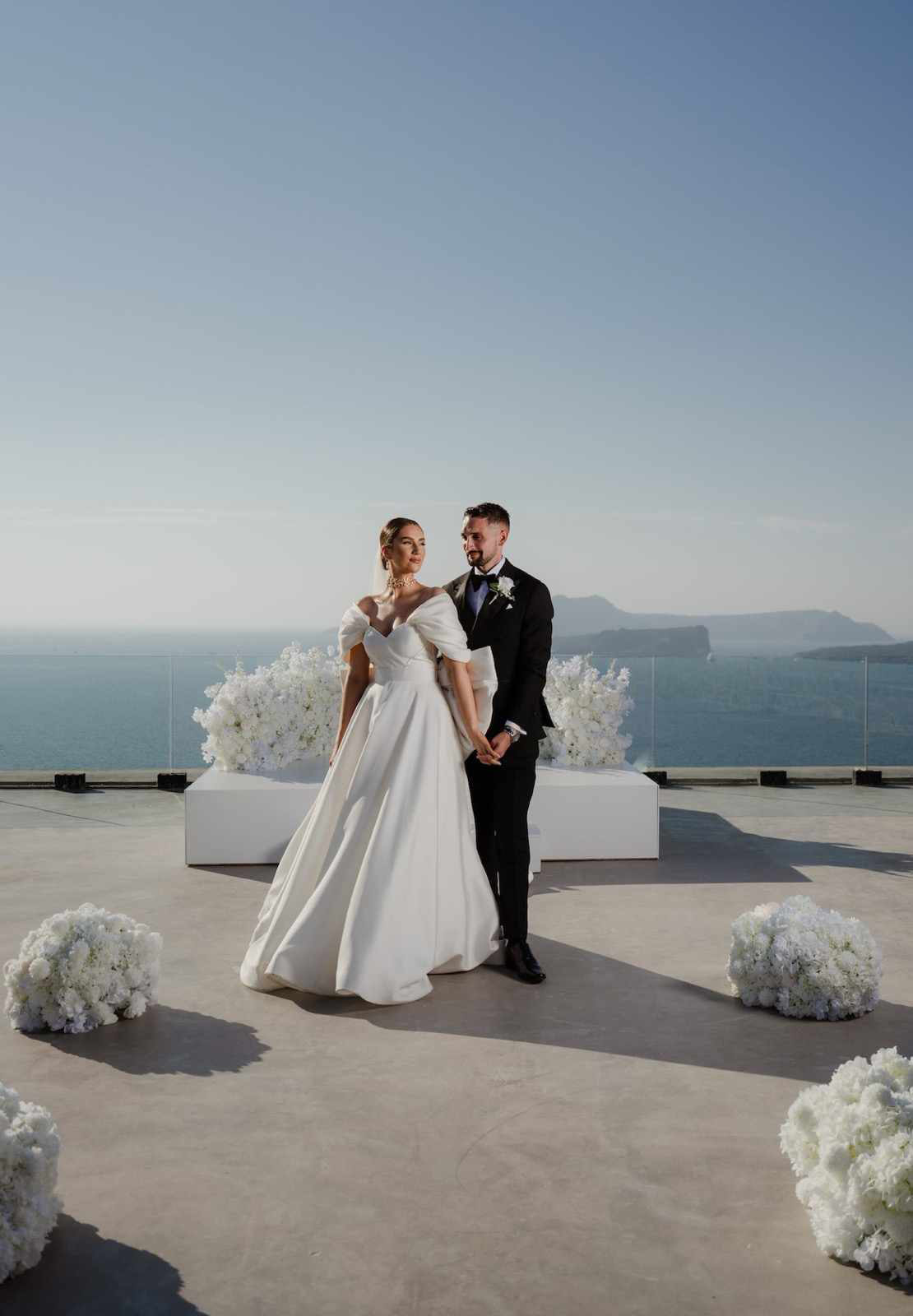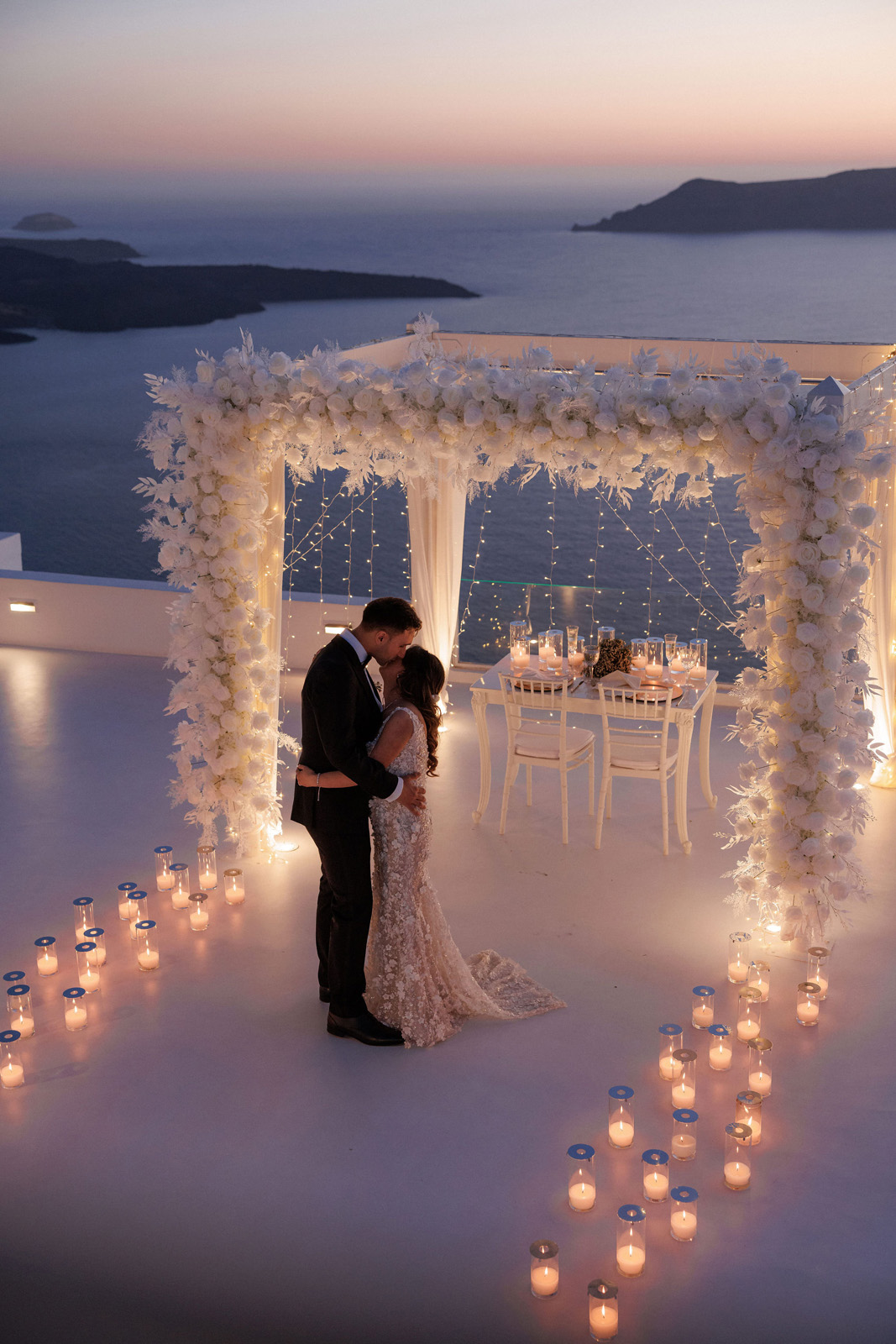 Wedding #weddinginsantorini #santoriniweddings #Santorini decoration #textures #fauxflowers #artificialflowers #mirroraisle #podium #floristinsantorini #weddingdecoration #weddingdeco #santorini