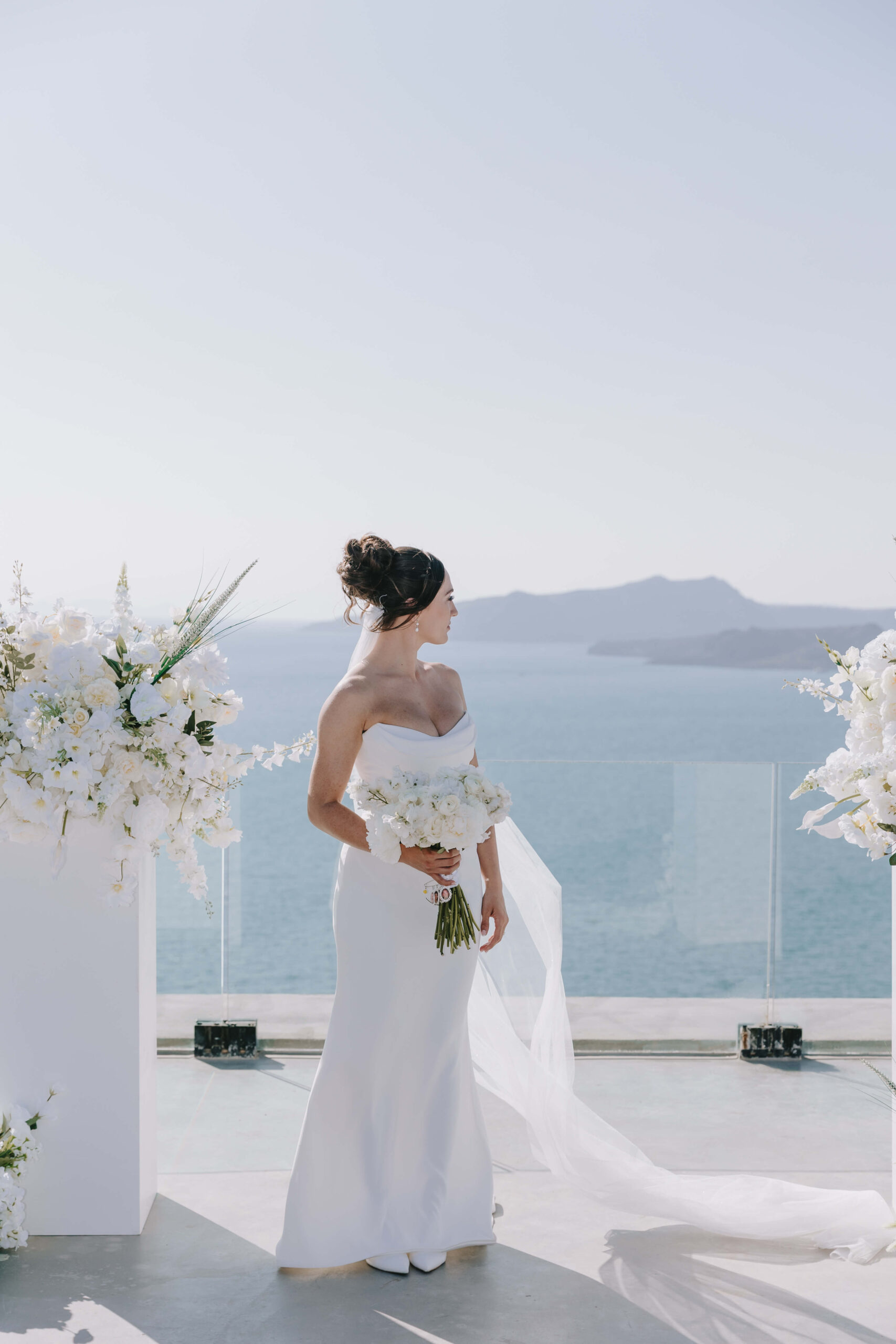 Wedding #weddinginsantorini #santoriniweddings #Santorini decoration #textures #fauxflowers #artificialflowers #mirroraisle #podium #floristinsantorini #weddingdecoration #weddingdeco #santorini